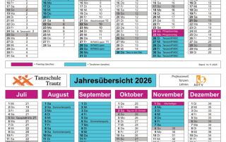 Thomas Acker2025-11-28T13:21:55+02:00✨🎄 Adventstanztee in der Tanzschule Trautz 🎄✨ Am Sonntag, 30. November 2025, findet von 10:30 – 12:30 Uhr unser Adventstanztee statt – ein Übungsvormittag in festlicher Adventsstimmung. Freuen Sie sich auf Tanzen in gemütlicher, weihnachtlicher Atmosphäre sowie auf hausgemachten Glühwein, warmen Punsch und leckere Plätzchen. 💫🫖🍪 Wir freuen uns auf Sie und einen [...]