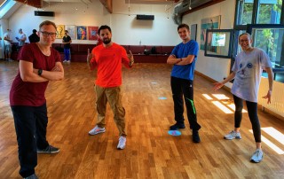 Das Team der Tanzschule Trautz auf Fortbildung: Mit dem amtierenden und mehrfachen Weltmeister in Breaking Muharem Demiri (Memi). v.l. Thomas, Memi, Nils und Julia