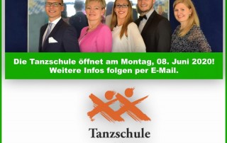 Die Tanzschule öffnet am Montag, 08. Juni 2020! Weitere Infos folgen per E-Mail.