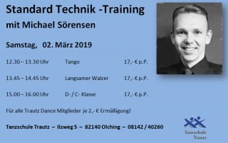 Bitte melden Sie sich telefonisch, per E-Mail oder online zu Ihrem Wunschtermin an. Kursinhalt ist das Welttanzprogramm der Stufe 1.  Dies sind die Tänze: Langsamer Walzer, Wiener Walzer, Foxtrott, Discofox, Cha Cha Cha, Rumba, Jive Die Tanzkurse dauern 6 x 1 ½ Stunden und kosten 70,- € pro Person. Für Wiederholerinnen (bitte mit Nachweis aus [...]